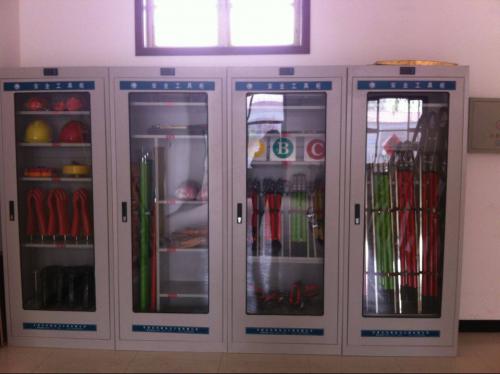 電力安全工具柜是裝載給各大電力工作人員使用的防護工器具的專業工具柜。絕緣桿,驗電器,接地線,絕緣手套,絕緣靴,安全帶,防毒面具,絕緣繩,絕緣擋板,屏蔽服等。